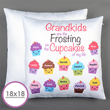 Large coussin personnalisé douze cupcakes 45,72 x 45,72 cm (sans insert)