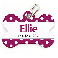 Médaille de chien personnalisée en forme d'os point bleu marine rose