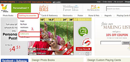 Hover the mouse-cursor over the Clothings Accessories tab and click button pins