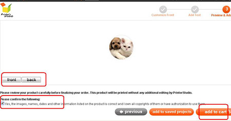 You will see a preview of your personalized item at this step. Click Previous button at the bottom of the page if you need to make any changes to your design.