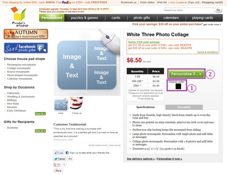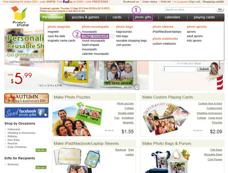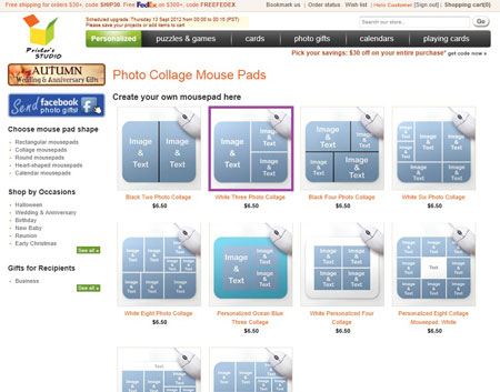 Hover the mouse-cursor over the Photo Gifts tab and click collage mousepads
