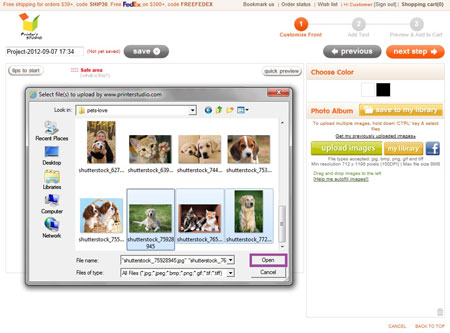 - Select the image file you wish to upload and click Open. Uploaded images are located inside the Photo Album box on the right side of the screen