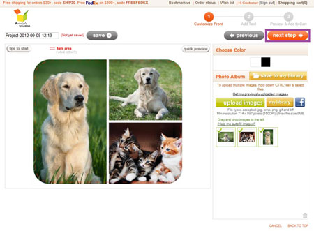 You will see a preview of your personalized item at this step. Click Previous button at the bottom of the page if you need to make any changes to your design.