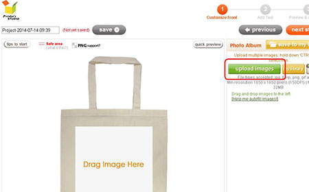 Uploaded images are located inside the Photo Album box on the right side of the screen