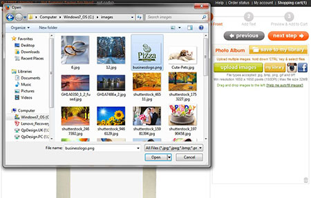 - Click on upload images to view the files on your computer's hard drive, floppy drive or digital camera