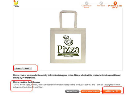 You will see a preview of your personalized item at this step. Click Previous button at the bottom of the page if you need to make any changes to your design.