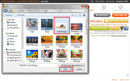 - Click on upload images to view the files on your computer's hard drive, floppy drive or digital camera