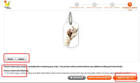 You will see a preview of your personalized item at this step. Click Previous button at the bottom of the page if you need to make any changes to your design.