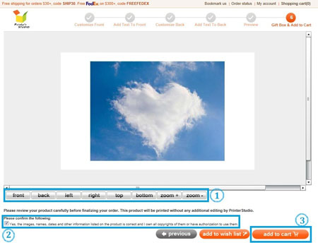 You will see a preview of your personalized item at this step. Click Previous button at the bottom of the page if you need to make any changes to your design.