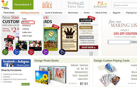 Hover the mouse-cursor over the Clothing Accessories tab and click flip flops