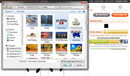 - Click on upload images to view the files on your computer's hard drive, floppy drive or digital camera
