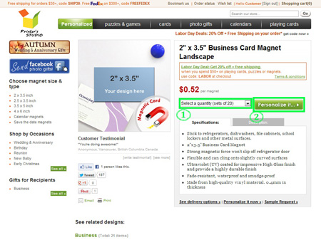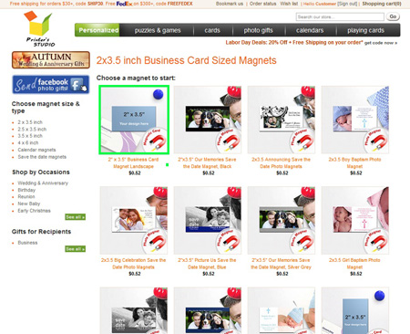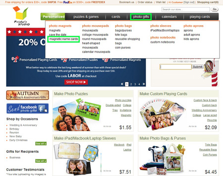 Hover the mouse-cursor over the Photo Gifts tab and click magnetic name cards
