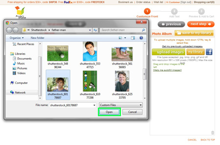 NOTE: If the image size, resolution or format is below our minimum requirements, you will receive an error message. Please rescan your image at a higher resolution or select another image. Please refer to our Image Requirements for more information.