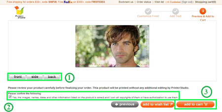 You will see a preview of your personalized item at this step. Click Previous button at the bottom of the page if you need to make any changes to your design.