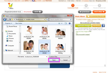 NOTE: If the image size, resolution or format is below our minimum requirements, you will receive an error message. Please rescan your image at a higher resolution or select another image. Please refer to our Image Requirements for more information.