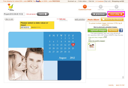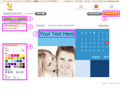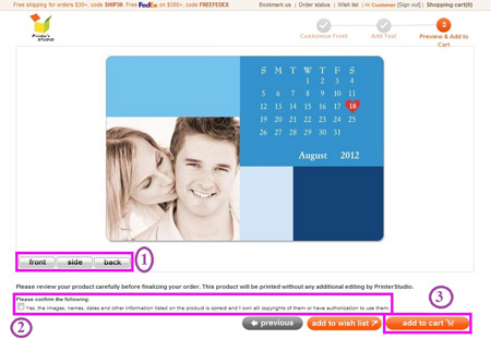 You will see a preview of your personalized item at this step. Click Previous button at the bottom of the page if you need to make any changes to your design.