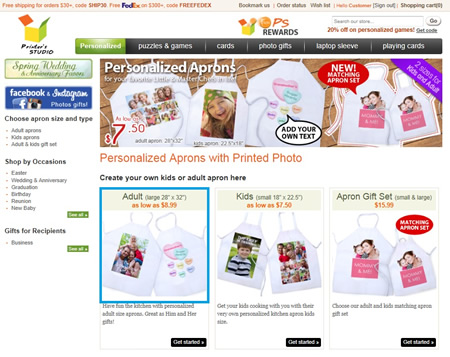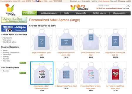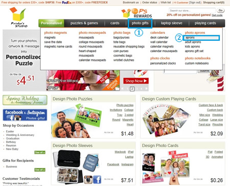 Hover the mouse-cursor over the Photo Gifts tab and click Aprons under text Photo Aprons