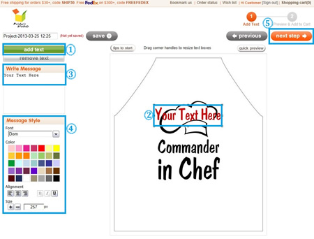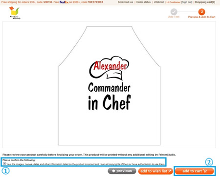 You will see a preview of your personalized item at this step. Click Previous button at the bottom of the page if you need to make any changes to your design.