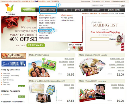 Hover the mouse-cursor over the puzzles and games tab and click round puzzles