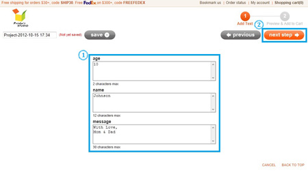You will see a preview of your personalized item at this step. Click Previous button at the bottom of the page if you need to make any changes to your design.