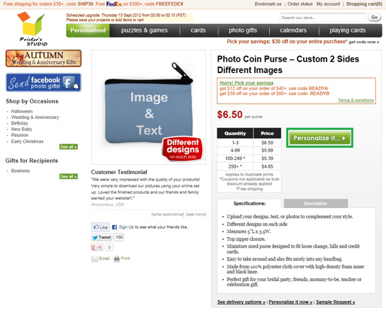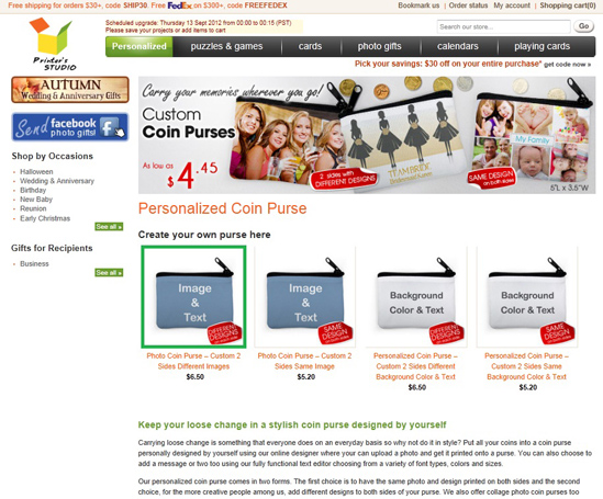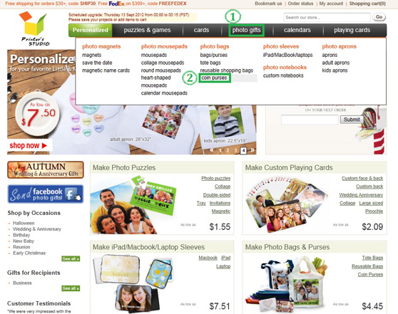 Hover the mouse-cursor over the Photo Gifts tab and click coin purses