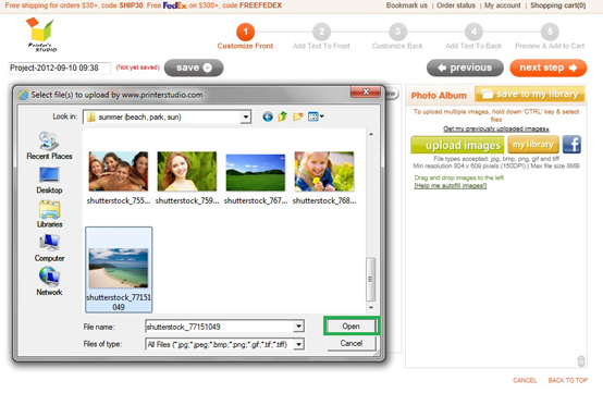 - Select the image file you wish to upload and click Open. Uploaded images are located inside the Photo Album box on the right side of the screen