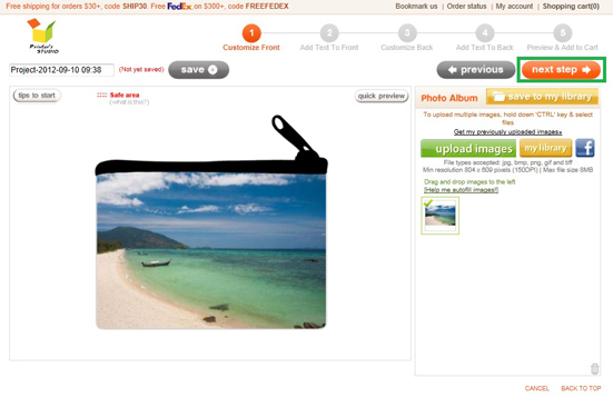 Repeat the steps in STEP 3 above to upload and add photo to the template, click on Next Step button at top right when you are ready.