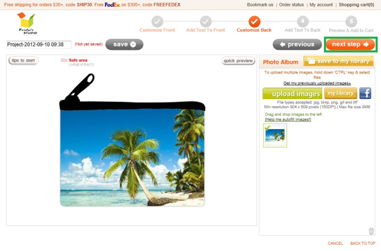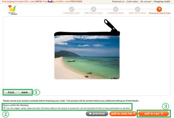 You will see a preview of your personalized item at this step. Click Previous button at the bottom of the page if you need to make any changes to your design.