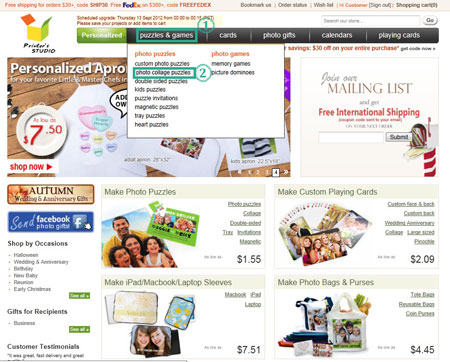 Hover the mouse-cursor over the puzzles and games tab and click photo collage puzzles
