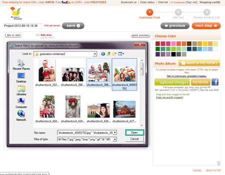 NOTE: If the image size, resolution or format is below our minimum requirements, you will receive an error message. Please rescan your image at a higher resolution or select another image. Please refer to our Image Requirements for more information.