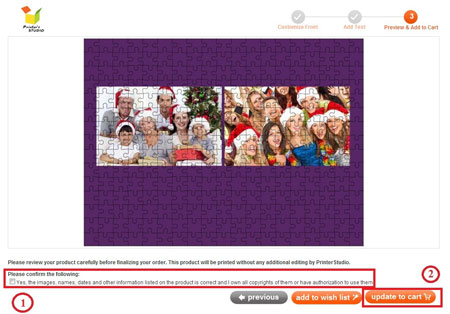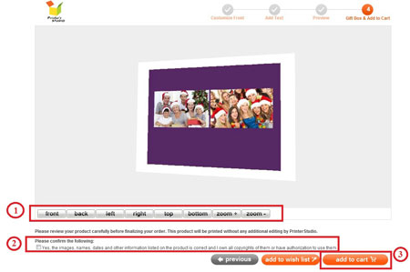 You will see a preview of your personalized item at this step. Click Previous button at the bottom of the page if you need to make any changes to your design.