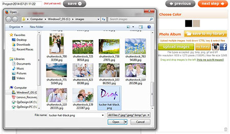 - Click on upload images to view the files on your computer's hard drive, floppy drive or digital camera