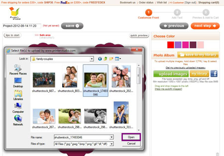- Select the image file you wish to upload and click Open. Uploaded images are located inside the Photo Album box on the right side of the screen