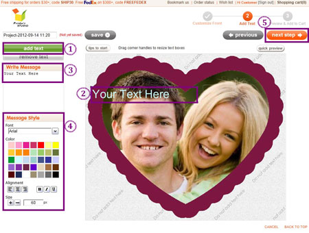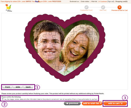 You will see a preview of your personalized item at this step. Click Previous button at the bottom of the page if you need to make any changes to your design.