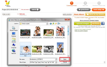 - Select the image file you wish to upload and click Open. Uploaded images are located inside the Photo Album box on the right side of the screen