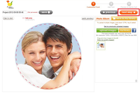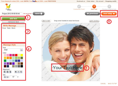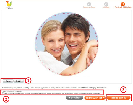 You will see a preview of your personalized item at this step. Click Previous button at the bottom of the page if you need to make any changes to your design.