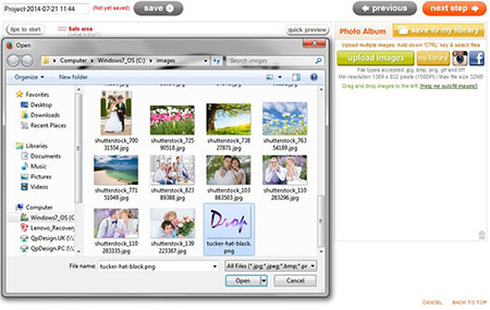 - Click on upload images to view the files on your computer's hard drive, floppy drive or digital camera