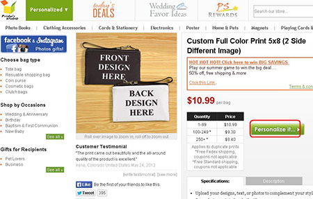 You will see a preview of your personalized item at this step. Click Previous button at the bottom of the page if you need to make any changes to your design.