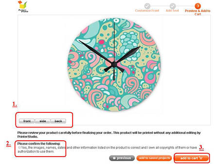 You will see a preview of your personalized item at this step. Click Previous button at the bottom of the page if you need to make any changes to your design.