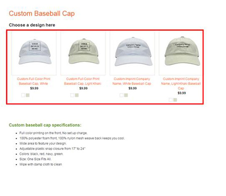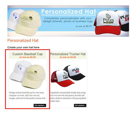 Select Custom Baseball Cap by clicking on the image or the text box
