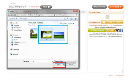 - Select the image file you wish to upload and click Open. Uploaded images are located inside the Photo Album box on the right side of the screen