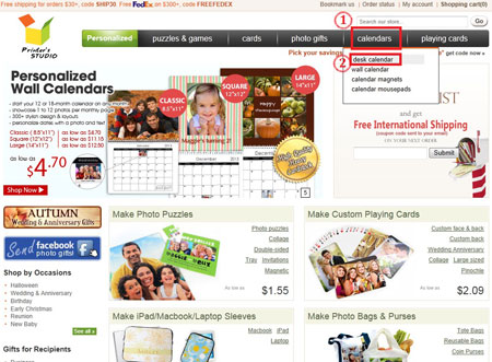 Hover the mouse-cursor over the calendars tab and click desk calendar