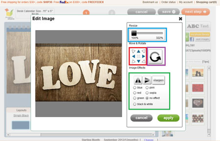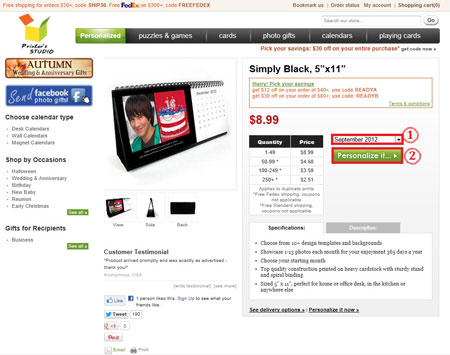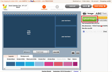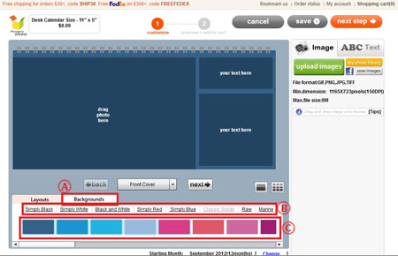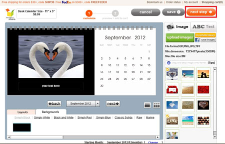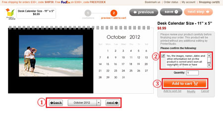 Review your calendar to make sure photos and texts are correct and make any changes by clicking on Previous icon at the top of the page.