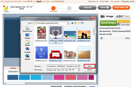 B. Select a layout depends on the number of images to use on each calendar month pages.