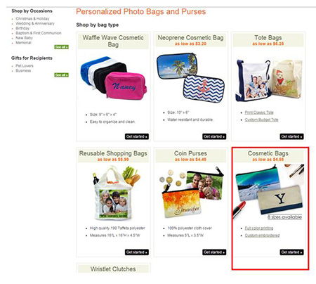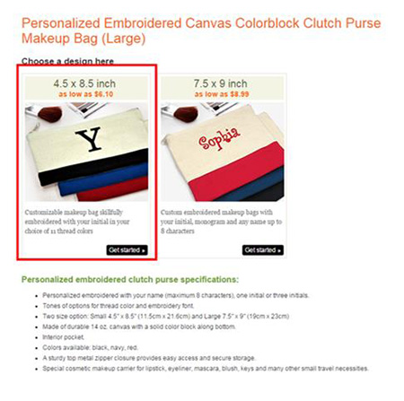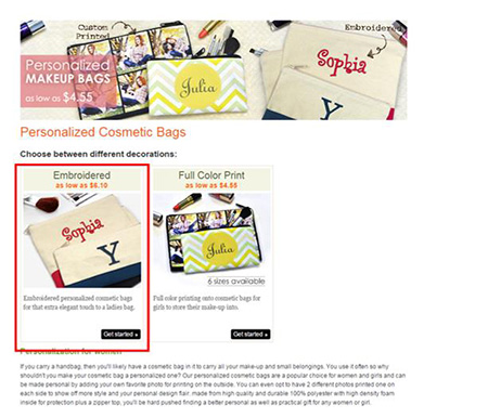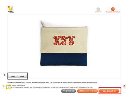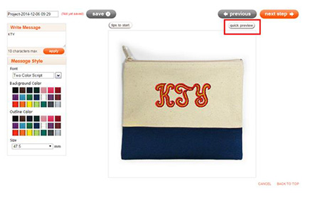 - Use the quick preview pop up window to preview the front and the back of your cosmetic bag