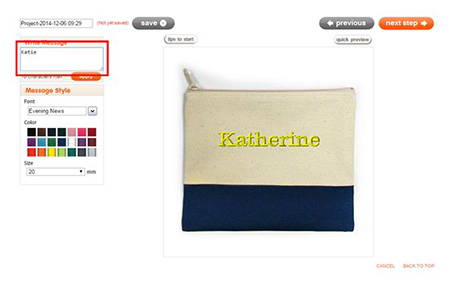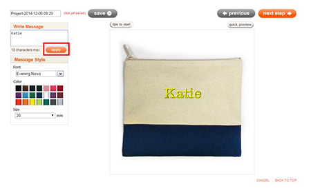 You will see a preview of your personalized item at this step. Click Previous button at the bottom of the page if you need to make any changes to your design.