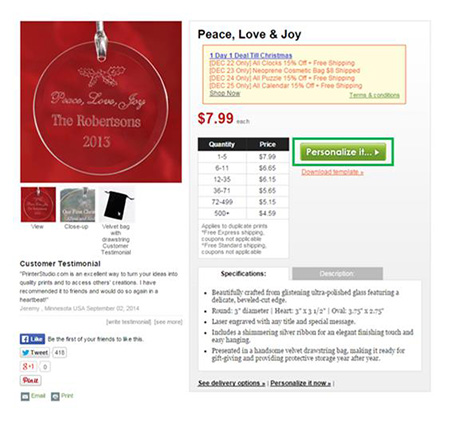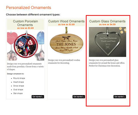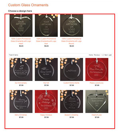 1. Select Custom Glass Ornaments by clicking on the image or the text box