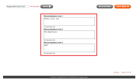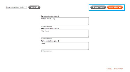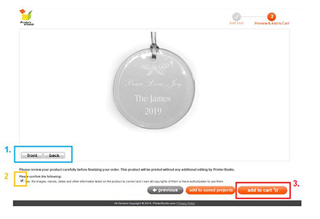 You will see a preview of your personalized item at this step. Click Previous button at the bottom of the page if you need to make any changes to your design.