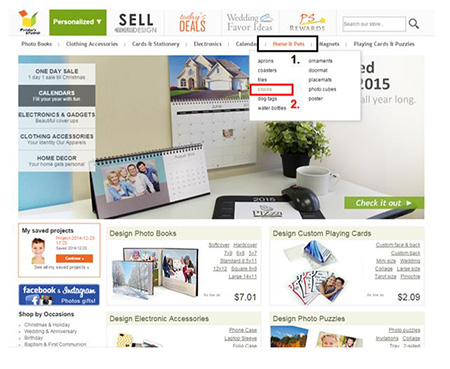 Hover the mouse-cursor over the Home & Petstab and click Clocks