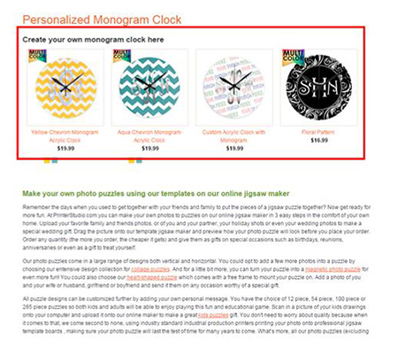Select Monogram Clock by clicking on the image or the text box